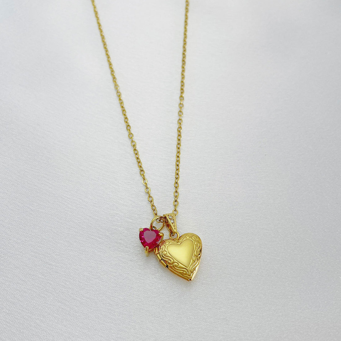 Couple Heart Locket Necklace with Initials and Anniversary Birthstone