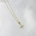 Illuminate your style with our Liora Clover Necklace. Featuring a dainty four-leaf clover adorned with white zirconia on a radiant gold setting, this necklace embodies purity, luck, and refined elegance. Perfect for adding a subtle sparkle to your everyday look.