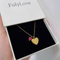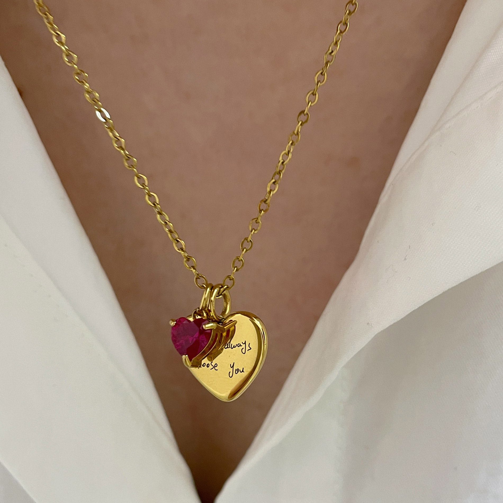 Engraved Handwriting Heart Necklace with Anniversary Birthstone