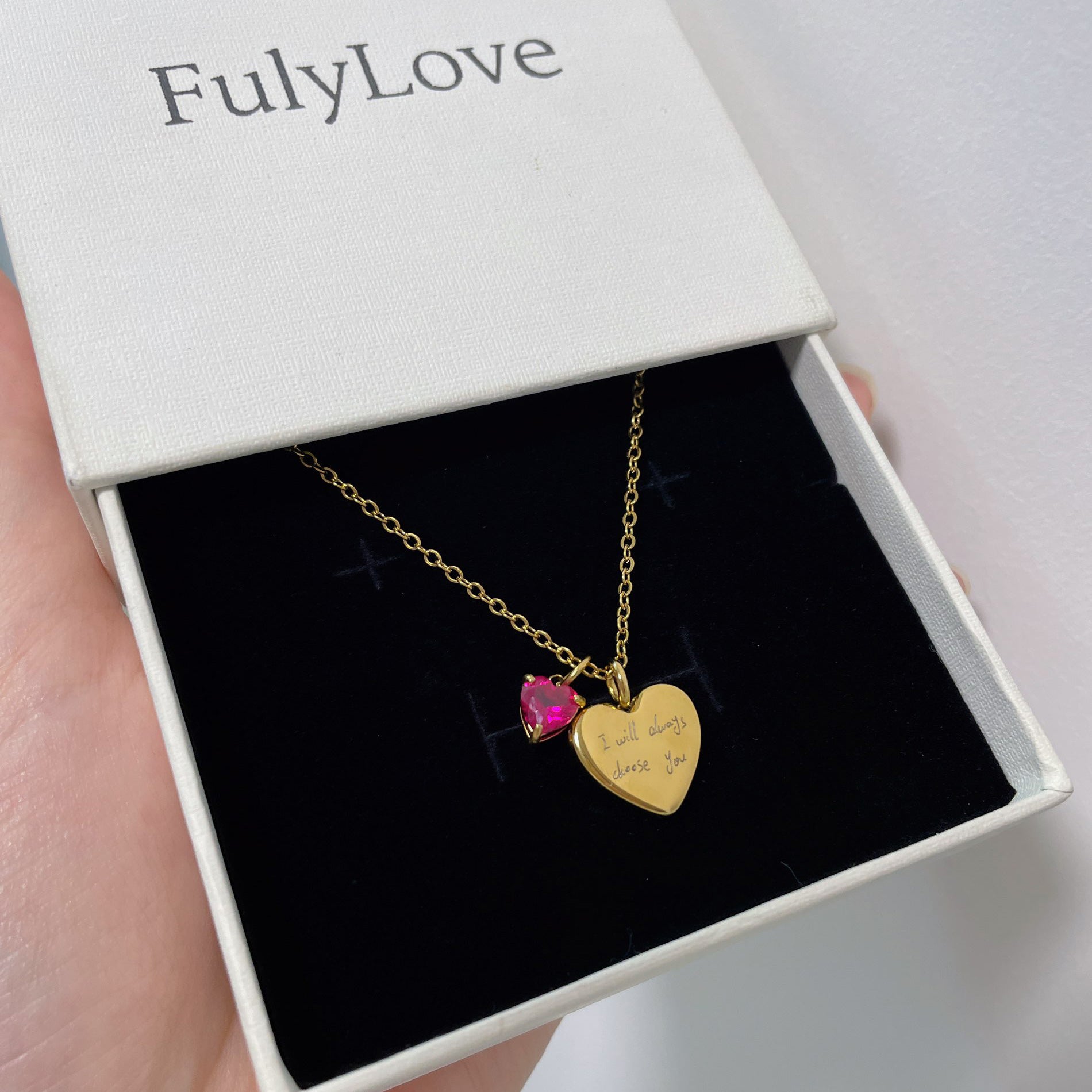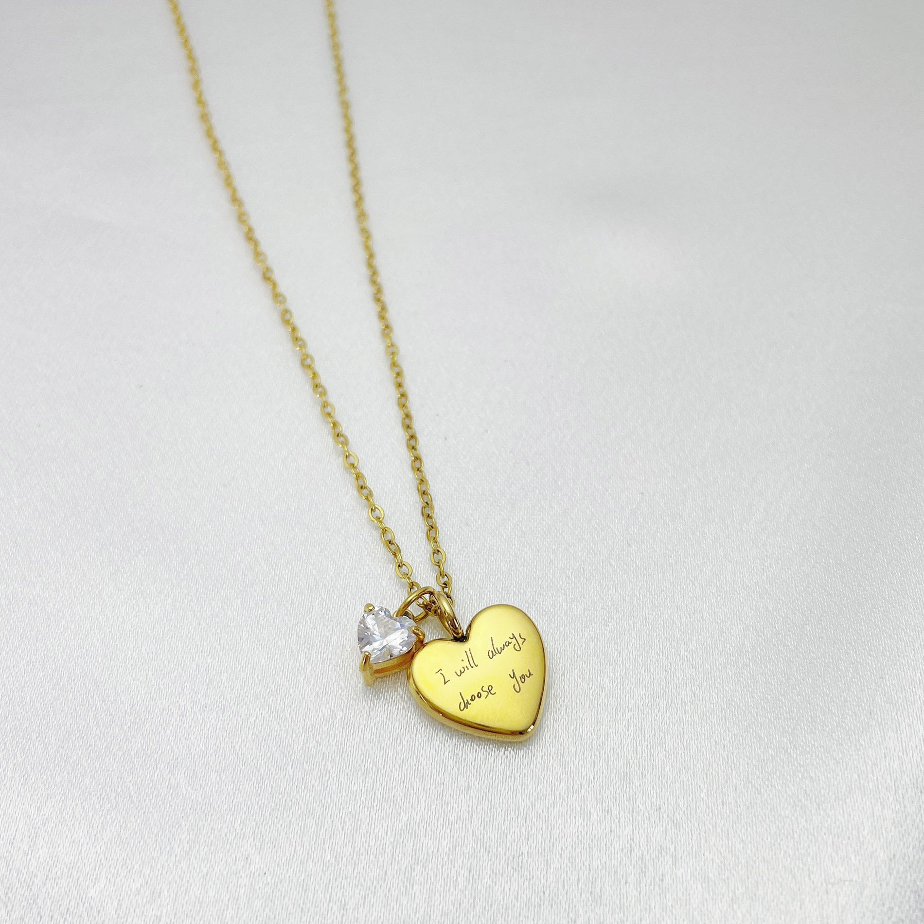Our Engraved Handwriting Heart Necklace transforms your handwritten words or drawings into a timeless keepsake. Simply upload a photo of your handwriting or sketch, and our artisans will carefully engrave it onto a delicate heart pendant—paired with a sparkling anniversary birthstone that represents your special date.
