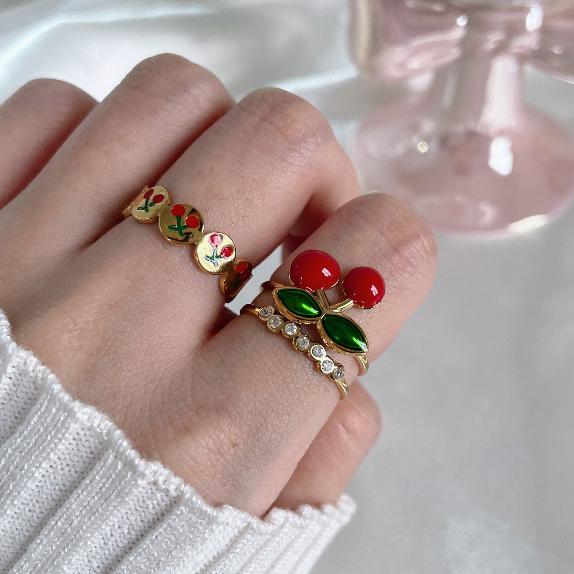 Add a touch of playful romance with our Sweet Cherry Ring. Featuring delicate cherry details, it brings charm and sweetness to your everyday look.