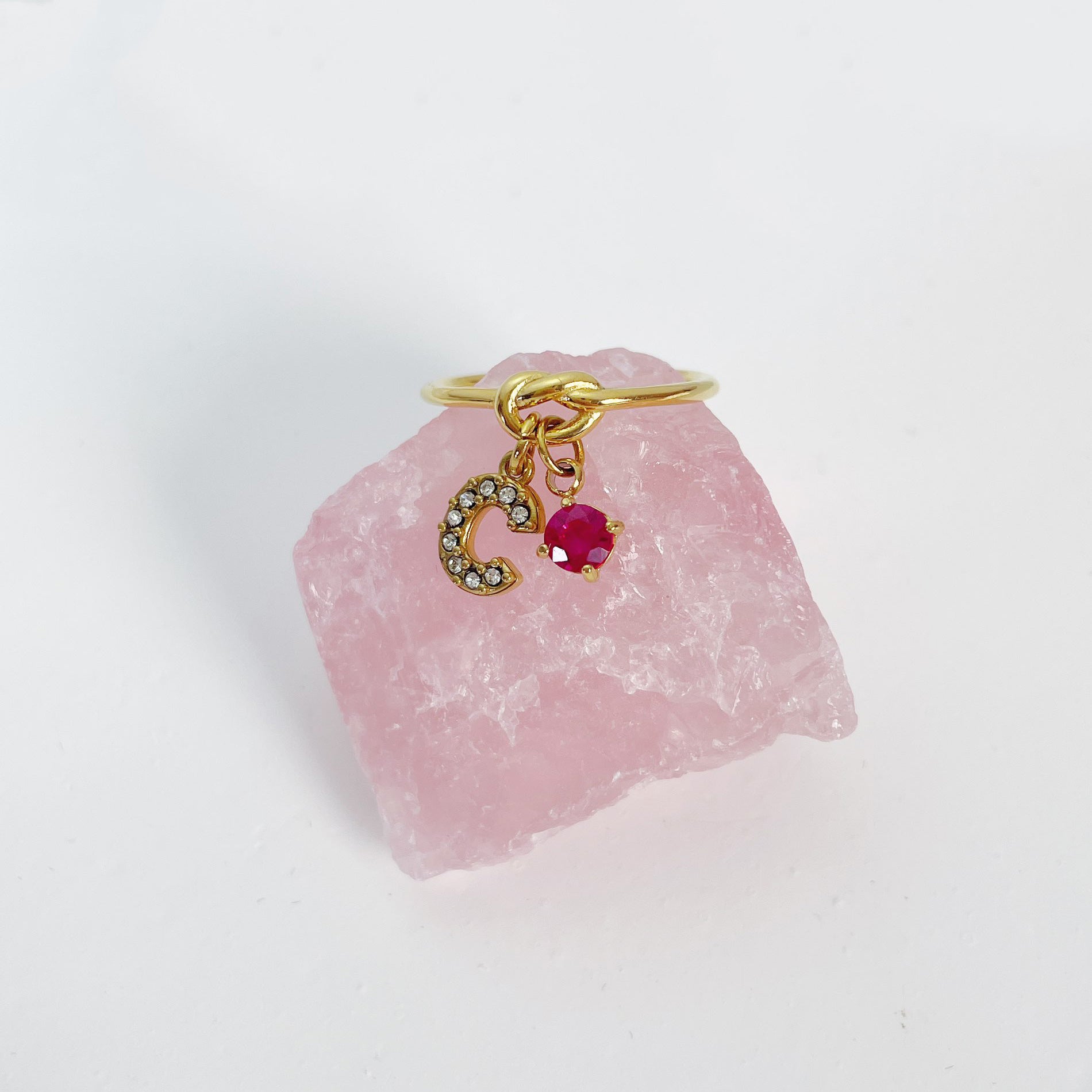 This dainty knot design holds two meaningful charms — your initial and an anniversary month stone — capturing both name and time in one timeless piece. A heartfelt gift that beautifully symbolizes the bond you share.